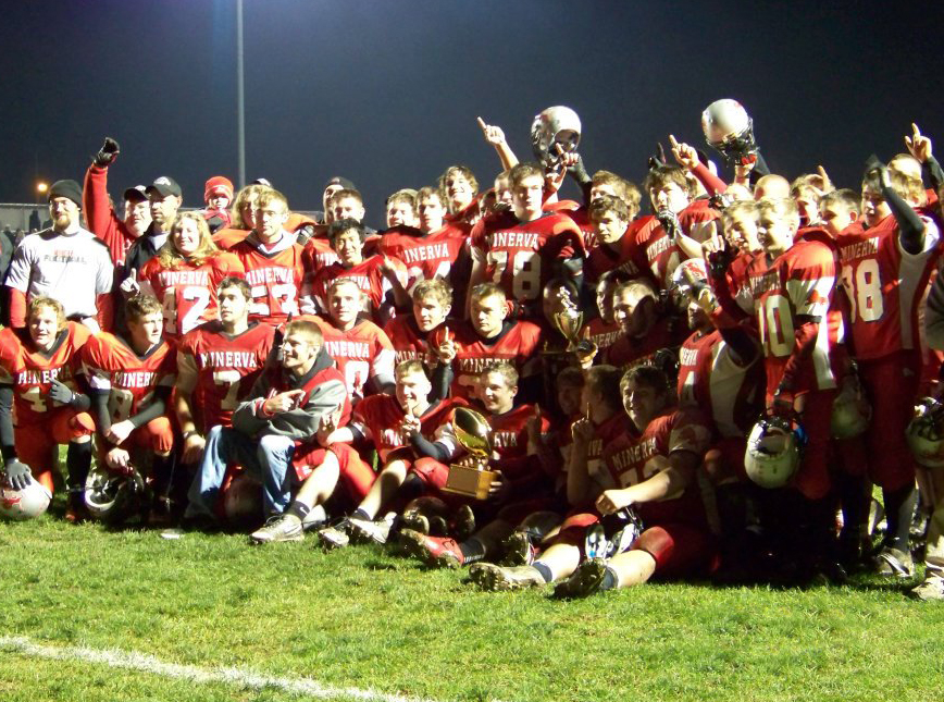 In this place we love our team whether they are good or bad… but even more so when they’re good. And this year, in Minerva, the team is good. Really good. After completing a thrilling 10-0 season and securing the 2011 Northeastern Buckeye Conference Championship, they made history one week ago today by winning our first playoff game EVER. Our team has gone to the playoffs plenty of times, but we’ve never known what it’s like to go on after that. And while that may not seem like a very big deal to you… trust me, around here… IT’S A BIG DAMN DEAL.